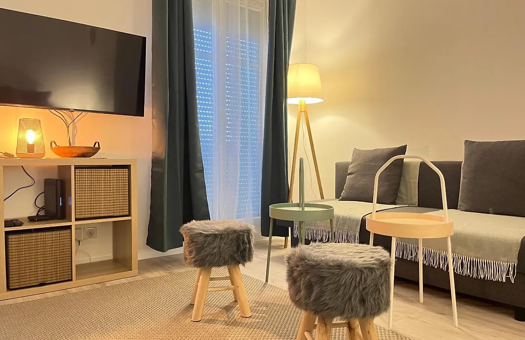 自炊に便利なキッチン用品,ガラス製品 と冷蔵庫付きの台所を利用できます. アパ-トから徒歩で5分の場所にあるBrasserie de Parisではヨ-ロッパ料理を楽しめます. BussySaintGeorges鉄道駅は宿泊少し離れたほどの所にあります.